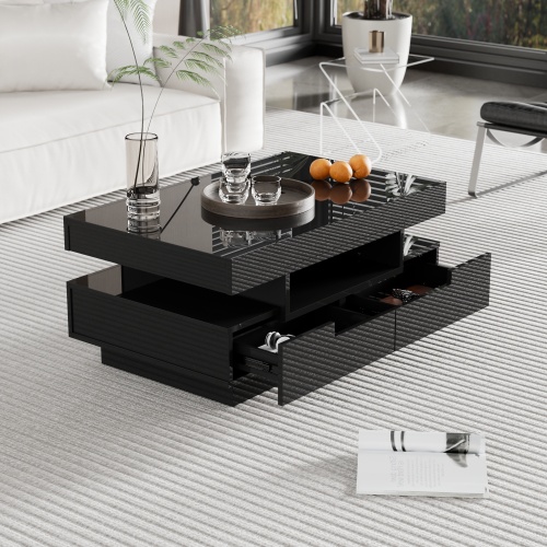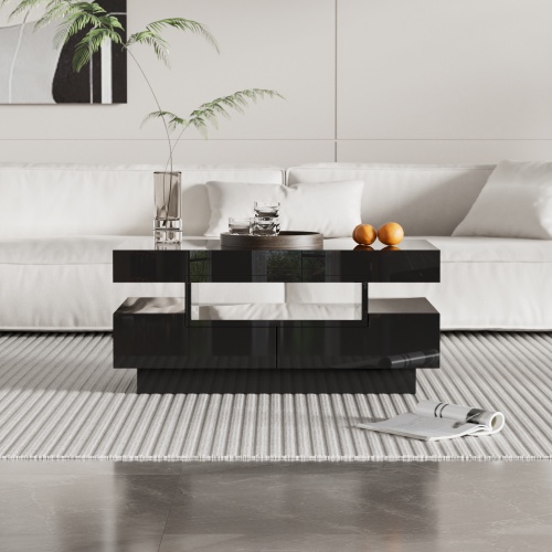Product Name:Coffee Table, High-Gloss Surface, with LED Light Strip, Four Drawers Front and Back, Large Storage Space