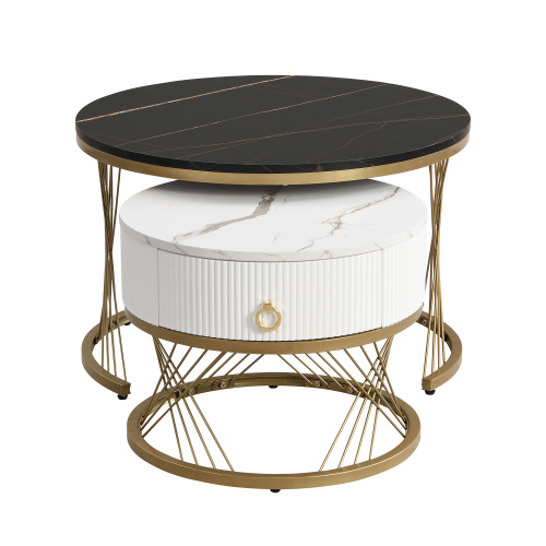 Product Name:Elegant nesting Coffee Table: Marble Look, Gold Decor, Side Table with Drawers – Set of 2
