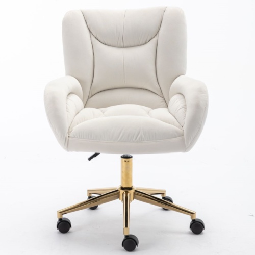 Full KD Velvet Fabric Material Adjustable Height Swivel Home Office Chair For Indoor Office With Gold Legs, Ivory