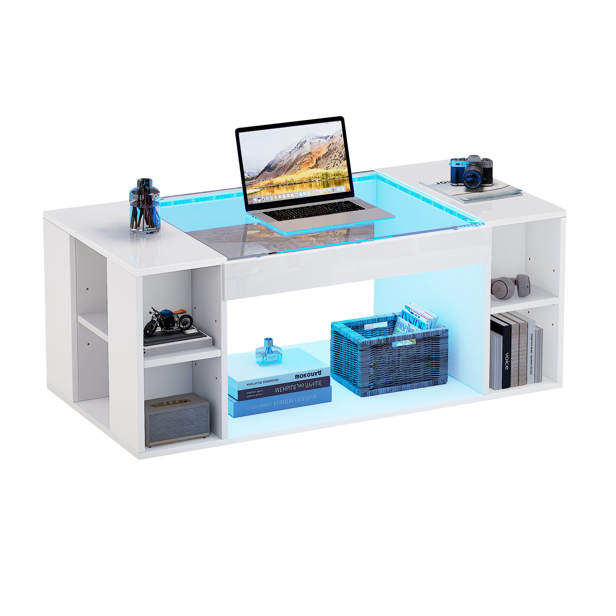 | Selling Points | Highlight/LED Light/Glass Desktop/Open Storage Space |