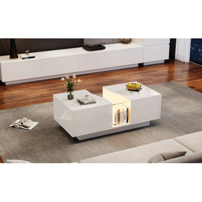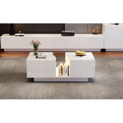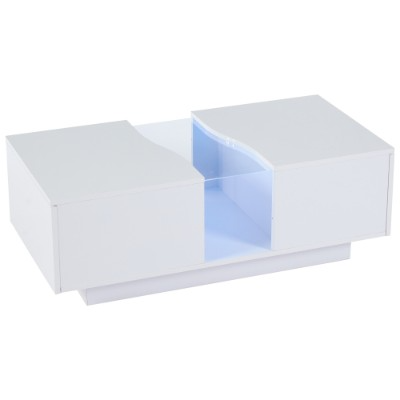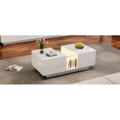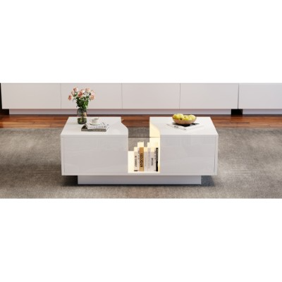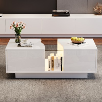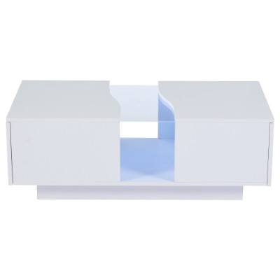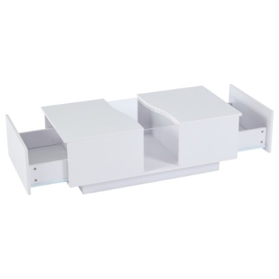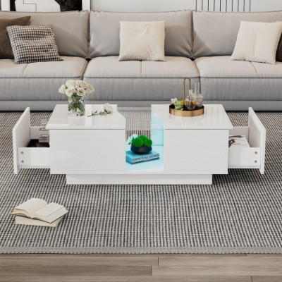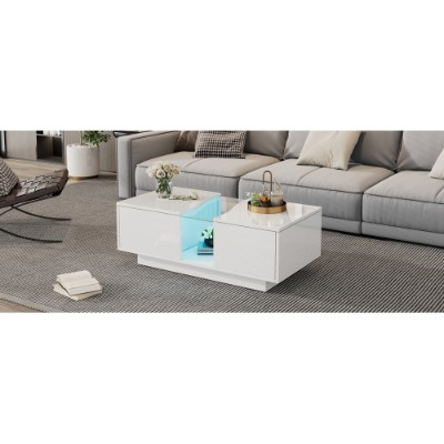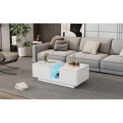 Product Name:Led Coffee Table with 2 Drawer Storage, High Gloss Coffee Table for Living Room Unique Shape Centre Table with 16-Color Led Lights,End Table for Home Office Furniture, White