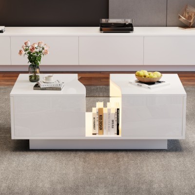- Double-sided drawer design for easy storage: There is a large-capacity drawer on each side of the coffee table, which can be used to organize and store frequently used items such as remote controls, magazines, snacks, etc., keeping the living room neat and tidy. The drawer fronts feature the same high-gloss finish as the coffee table to maintain the cohesiveness of the overall design.
