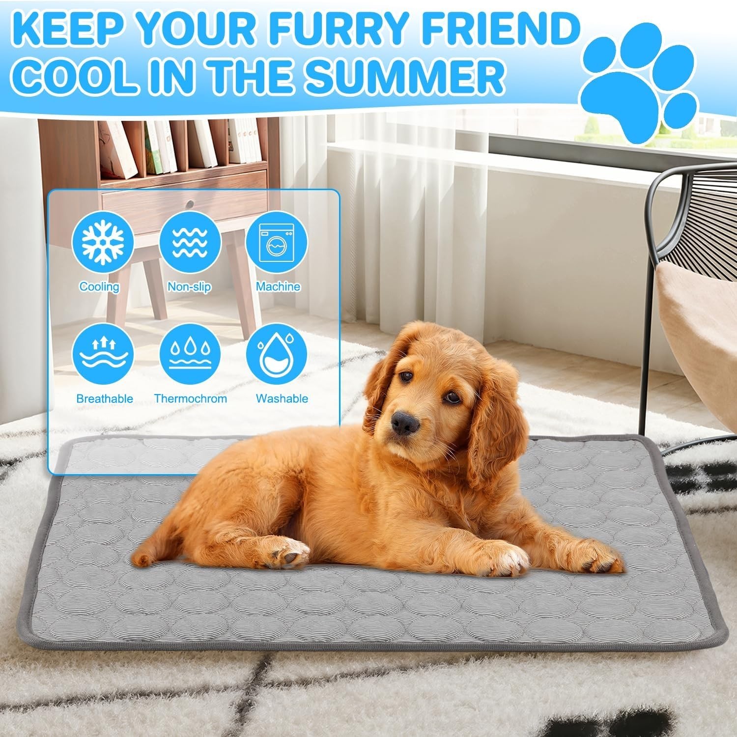 • Durable & Pet-Safe Construction:Soft, cool-sensitive ice silk for a soothing feel. High-density cotton sponge for cushioning and comfort. Ventilated mesh for breathability and stability.