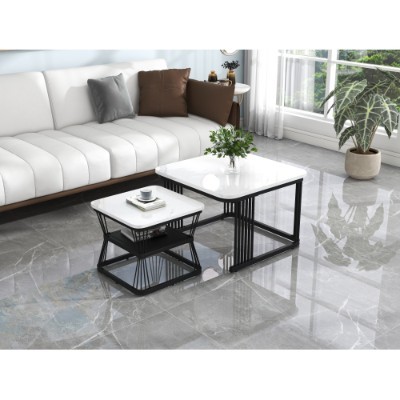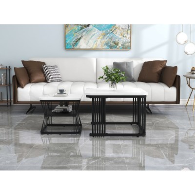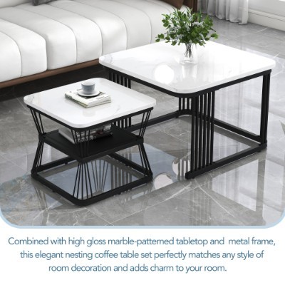 Product Name:Set of 2 Tables Square Coffee Table Coffee Table Set Nesting Sofa Table Multi-functional End Side Table Nesting Tables with Black Metal Frame Legs and Marble Pattern White Top for Living Room Home