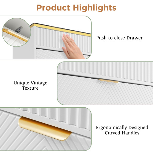 - Durable and Sturdy Material: The handles and legs of the dresser are made of metal, ensuring strength and long-lasting durability. The cabinet body is constructed from eco-friendly particle board, which is stable, lightweight, and sturdy, providing excellent load-bearing capacity and durability for everyday use.