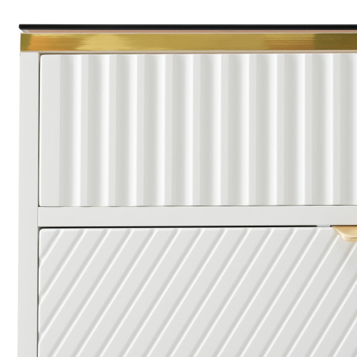 - Fashion Design Elements: This stylish storage cabinet features a brown glass surface decoration and suction cups to ensure stability. The drawer panels have a three-dimensional pattern, and the brushed metal design around the edges adds a modern touch to the overall look of the cabinet.