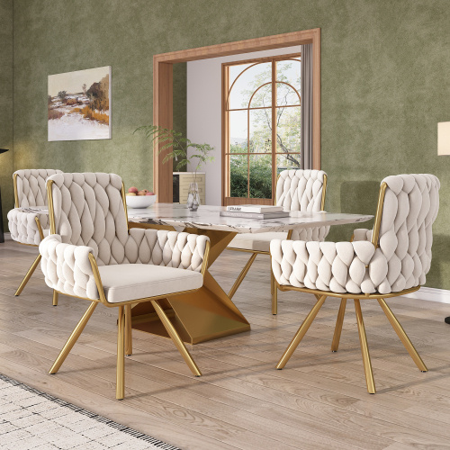 Product Name:velvet dining chair, Armchair, single luxurious living room and bedroom swivel chair, Leisure swivel chair with four metal support legs, beige,(OLD SKU:WF310508AAB)